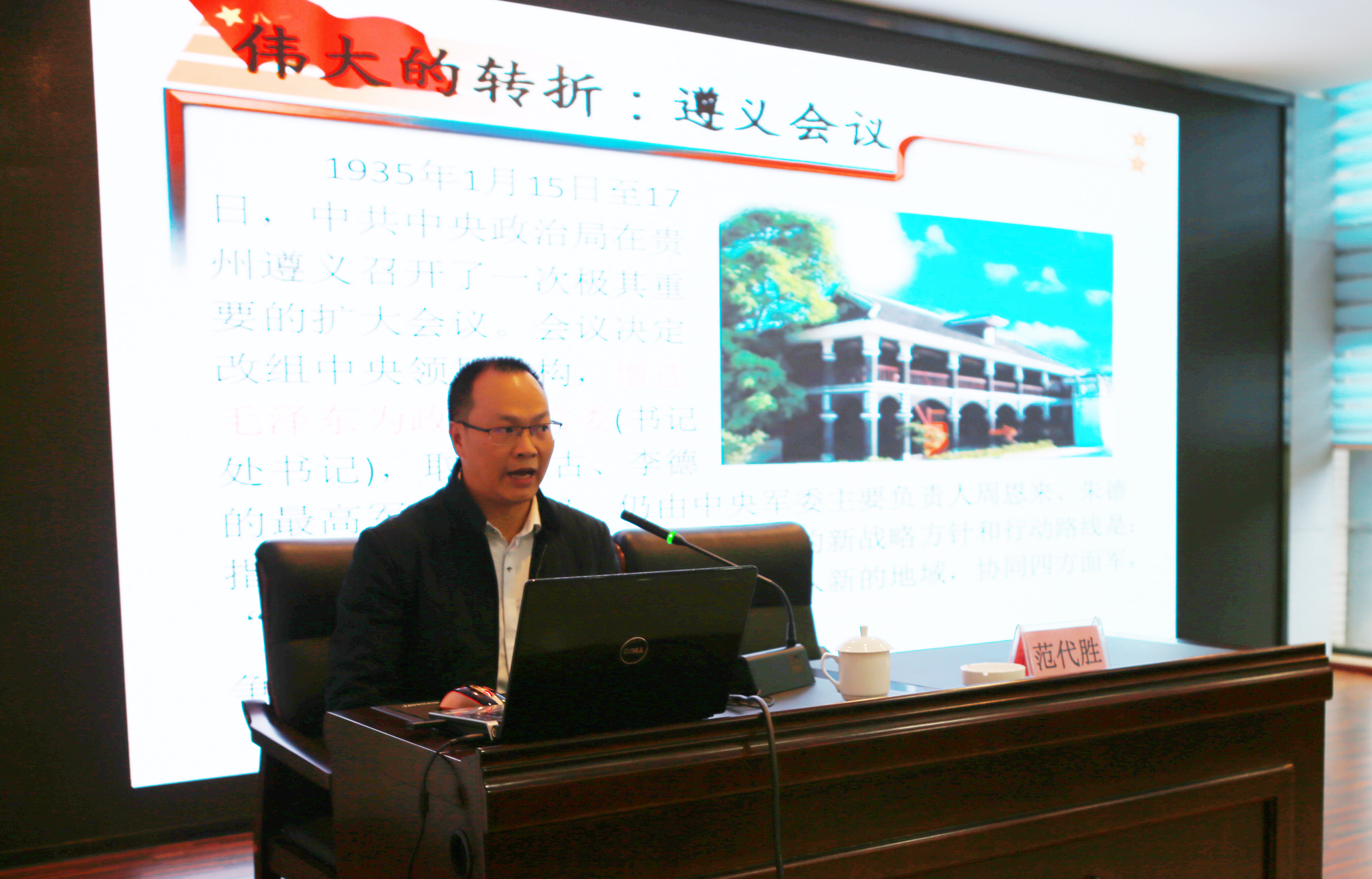 范代勝老師分別從四渡赤水戰(zhàn)役概況、毛澤東的得意之處、四渡赤水在古藺、四渡赤水的啟示方面深入淺出講述了紅軍四渡赤水的前因后果。為執(zhí)行遵義會議北渡長江與紅四方面軍會合的決定,1935年1月19日,中央紅軍離開遵義北上,由此有了紅軍長征驚心動魄的四渡赤水經典之戰(zhàn)。四渡赤水,體現(xiàn)了毛澤東機動靈活的戰(zhàn)略戰(zhàn)術原則,是以少勝多、變被動為主動的運動戰(zhàn)典范,是紅軍長征中最驚心動魄、最精彩的軍事行動,是毛澤東軍事生涯中的“得意之筆”。