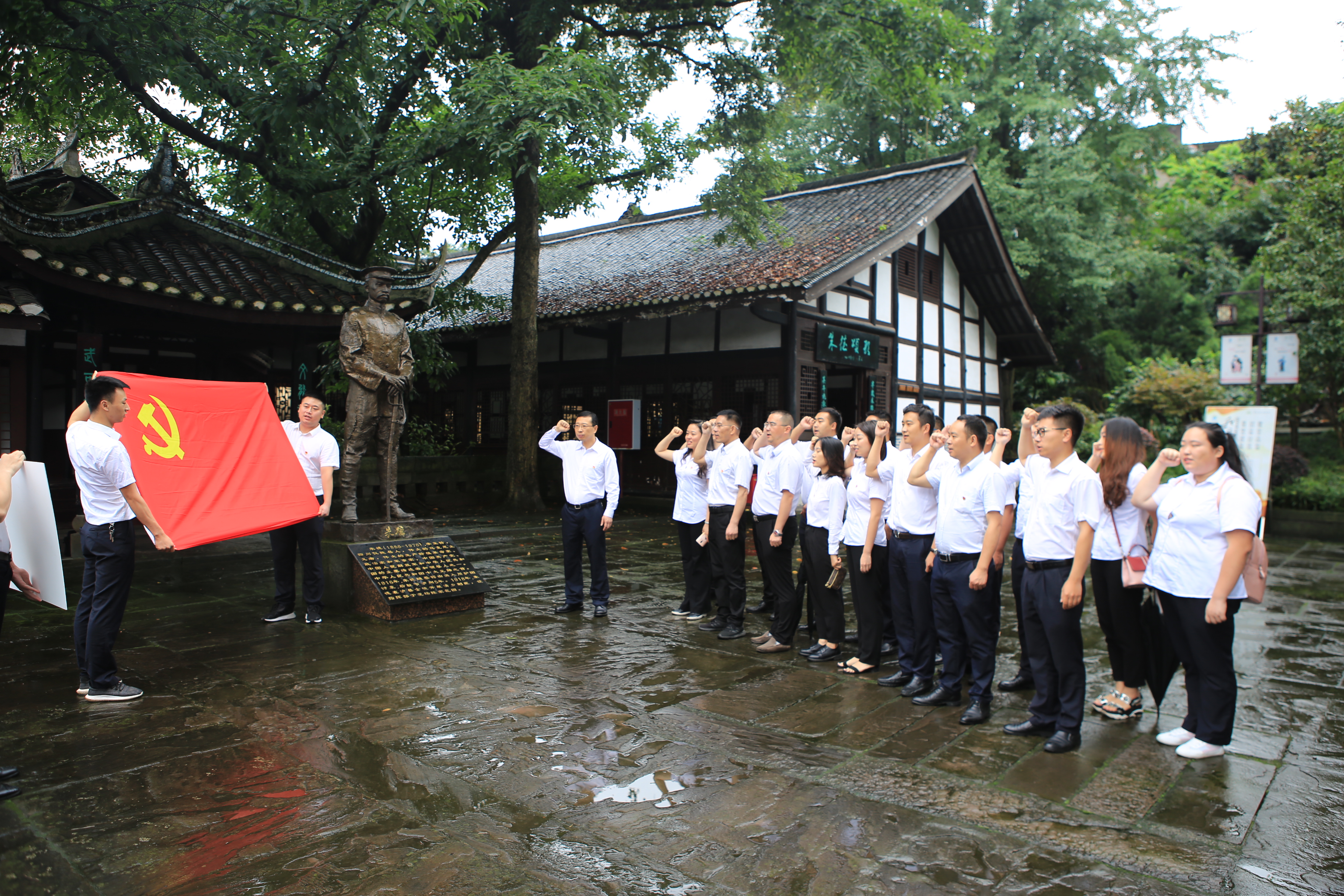 全體人員懷著對朱德元帥的崇敬之情,在解說員的引導下參觀了朱德舊居。參觀中,大家認真聽取講解員的解說,瞻仰館內每張圖片、每封信件和每件文物,見證朱德元帥護國、護法戰(zhàn)爭以及駐節(jié)瀘州剿匪時期在川南地區(qū)戰(zhàn)斗、學習、生活的歷程,感受其堅定不移的革命信念和舍小家為大家的崇高理想。隨后在朱德元帥雕像前,由劉小波同志領誓,全體黨員重溫了入黨誓詞,堅定了共產(chǎn)主義信仰,同時向朱德莊嚴承諾后輩們“不忘初心、牢記使命”的決心!