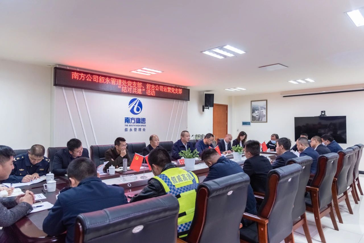 為進一步激發(fā)敘古、敘威、納黔高速運營管理工作活力,推動基層黨組織資源共享、優(yōu)勢互補、共同發(fā)展,構建黨建工作新格局。2022年11月22日, 敘古公司運營黨支部與南方公司敘永管理處黨支部開展“結對共建”活動,著力在疫情防控、協(xié)同保暢、應急搶險、除冰除雪和優(yōu)化通行環(huán)境等方面互聯(lián)互動,融合共進。