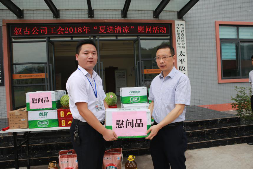 為表達(dá)對(duì)一線員工的關(guān)心和關(guān)愛(ài),確?;鶎訂T工身體健康,平安度夏。8月9日、14日,公司總經(jīng)理劉小波,紀(jì)委書(shū)記、工會(huì)主席李興明率公司黨群、收費(fèi)運(yùn)營(yíng)、路產(chǎn)安全、紀(jì)檢監(jiān)察處部門(mén)負(fù)責(zé)人一行先后前往一線收費(fèi)站和赤水河大橋施工現(xiàn)場(chǎng),親切慰問(wèn)在高溫酷暑中堅(jiān)守在一線的廣大員工。并在太平收費(fèi)站召開(kāi)敘古公司“大學(xué)習(xí)、大調(diào)研、大討論”現(xiàn)場(chǎng)辦公會(huì),就站上存在的安全隱患、職工急需解決的困難和問(wèn)題進(jìn)行研究部署。