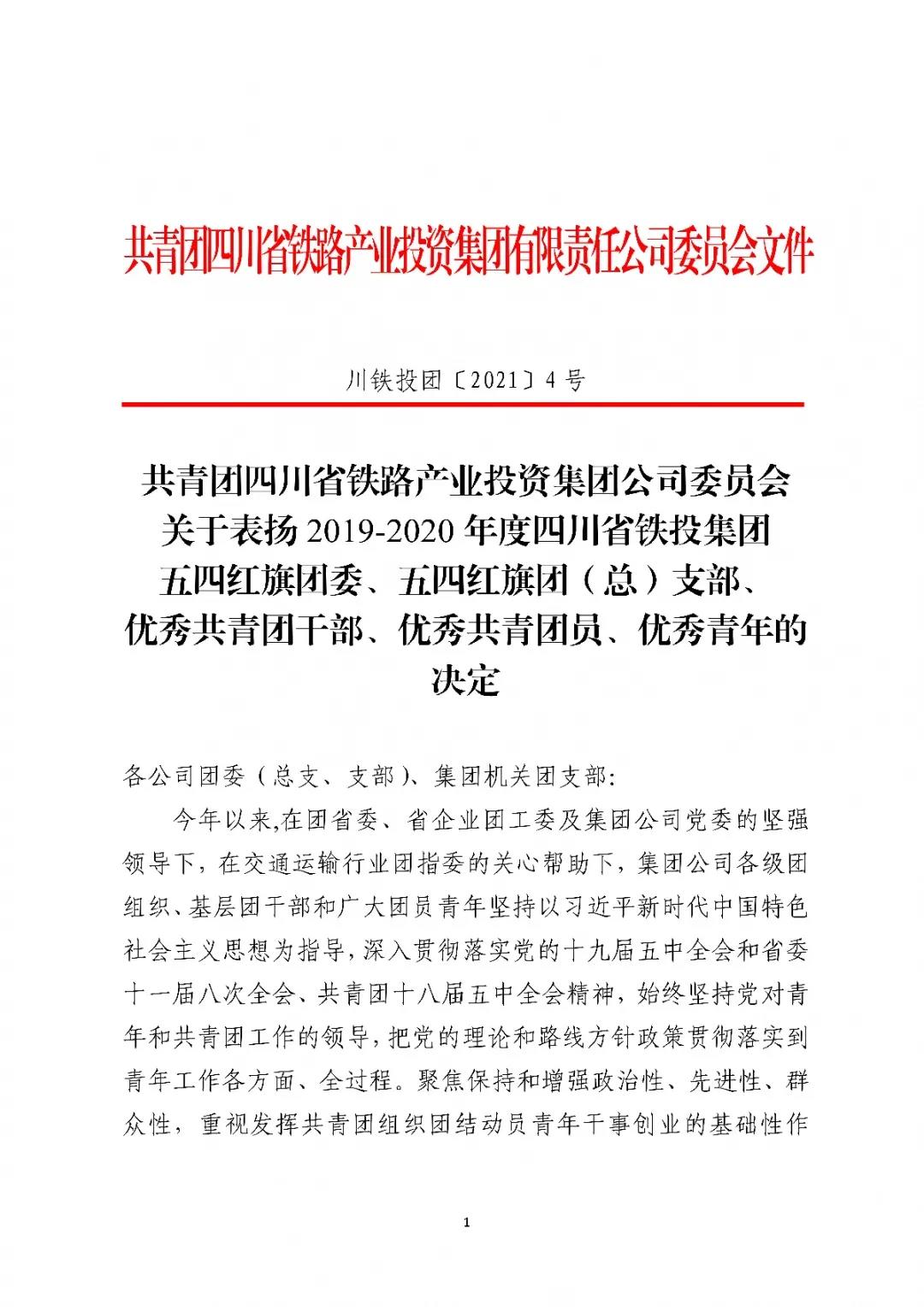 喜報(bào) | 敘古公司團(tuán)支部和個(gè)人榮獲鐵投集團(tuán)團(tuán)委表彰