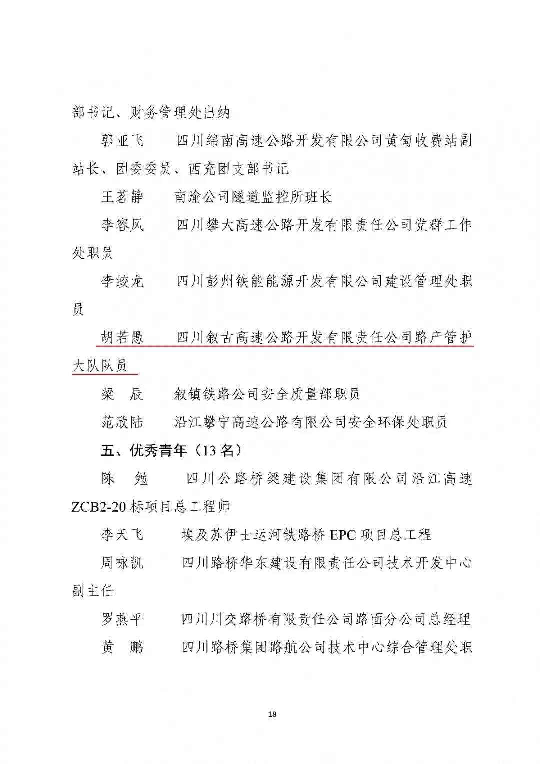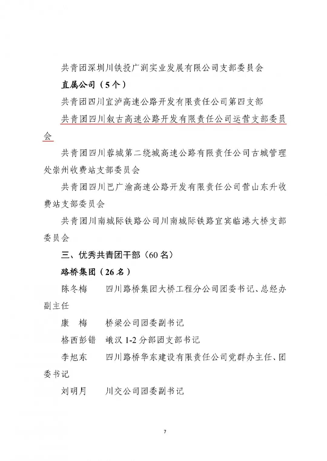 “五四”青年節(jié)期間,敘古公司團(tuán)支部和個(gè)人榮獲鐵投集團(tuán)團(tuán)委表彰。公司運(yùn)營團(tuán)支部被四川鐵投集團(tuán)團(tuán)委授予2019-2020年度“五四紅旗團(tuán)(總)支部”榮譽(yù)稱號(hào),團(tuán)委副書記李長江被授予“優(yōu)秀共青團(tuán)干部”榮譽(yù)稱號(hào),路產(chǎn)管護(hù)大隊(duì)隊(duì)員胡若愚被授予“優(yōu)秀共青團(tuán)員”榮譽(yù)稱號(hào)。