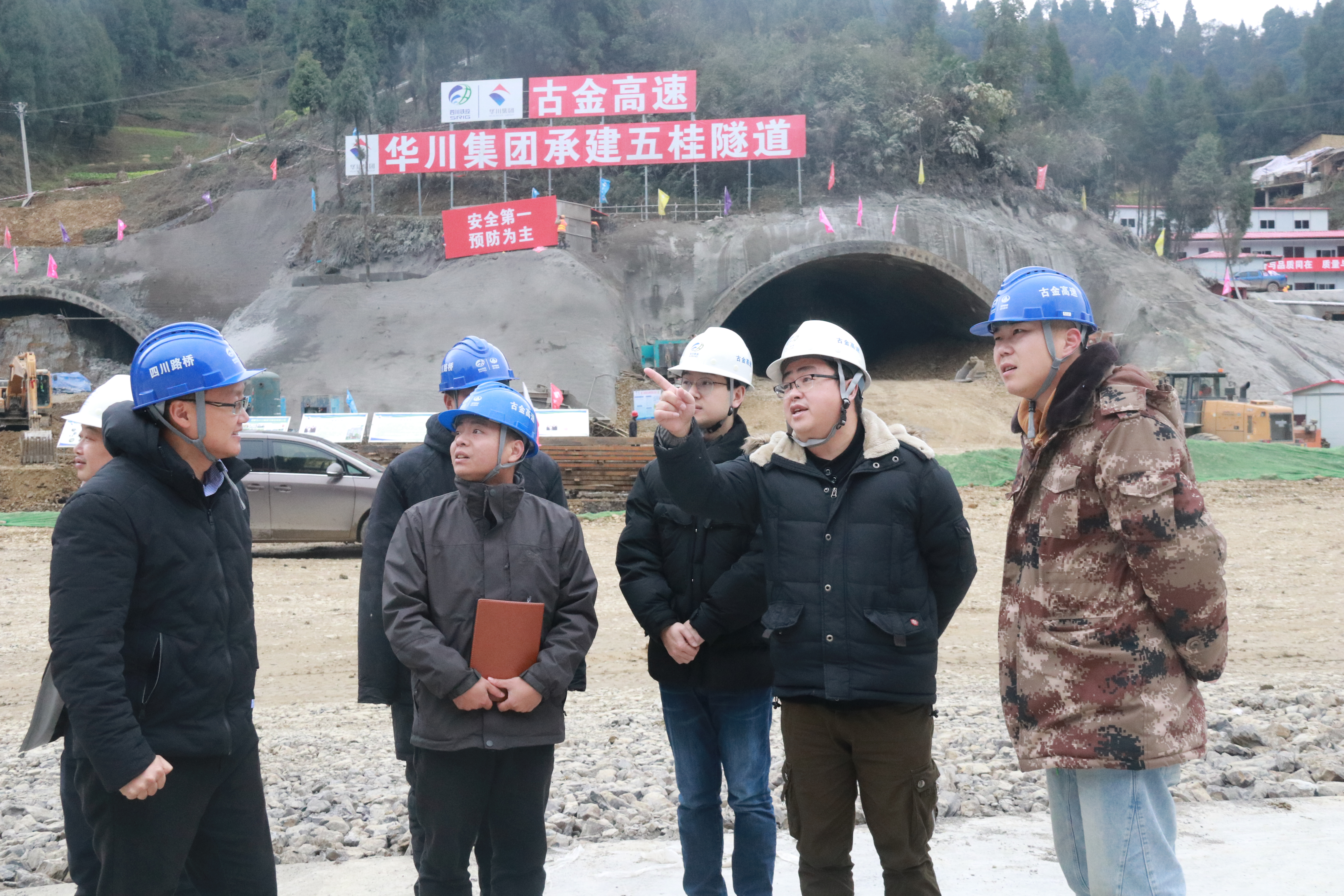 12月29日,公司紀委副書記(主持工作)肖菱帶領黨群工作處、紀檢監(jiān)察處進工地、看進展、聽匯報,實地調研了古金高速ZCB1-3項目部朱家山隧道口工程建設項目施工進度、質量及安全管理等工作情況。