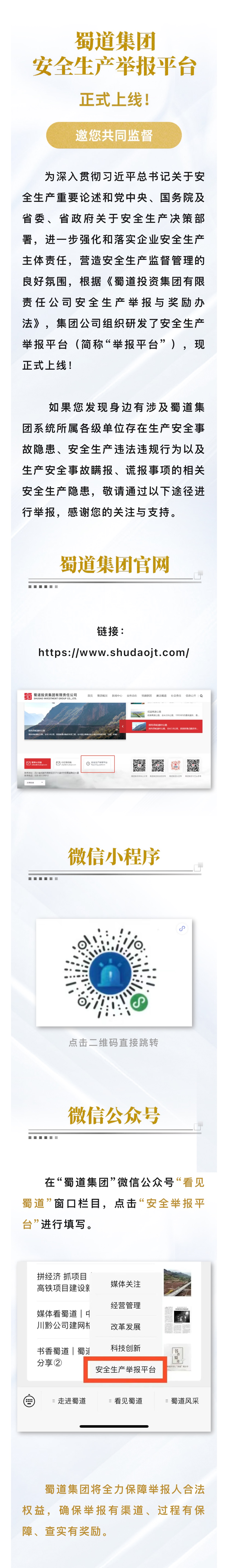 蜀道集團(tuán)安全生產(chǎn)舉報(bào)平臺(tái)正式上線!邀您共同監(jiān)督