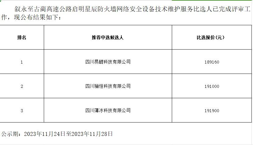 敘永至古藺高速公路啟明星辰防火墻網(wǎng)絡(luò)安全設(shè)備技術(shù)維護(hù)服務(wù)比選公告