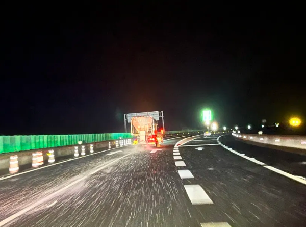 12月22日19:01,敘威高速路巡清障隊(duì)隊(duì)員在巡查中發(fā)現(xiàn),營(yíng)山匝道K9處溫度計(jì)驟降至0℃以下,并伴隨小雨,路面結(jié)冰風(fēng)險(xiǎn)增加。為確保過(guò)往車(chē)輛的安全通行,敘威高速路巡清障隊(duì)立即啟動(dòng)應(yīng)急預(yù)案,組織開(kāi)展預(yù)撒鹽準(zhǔn)備工作。