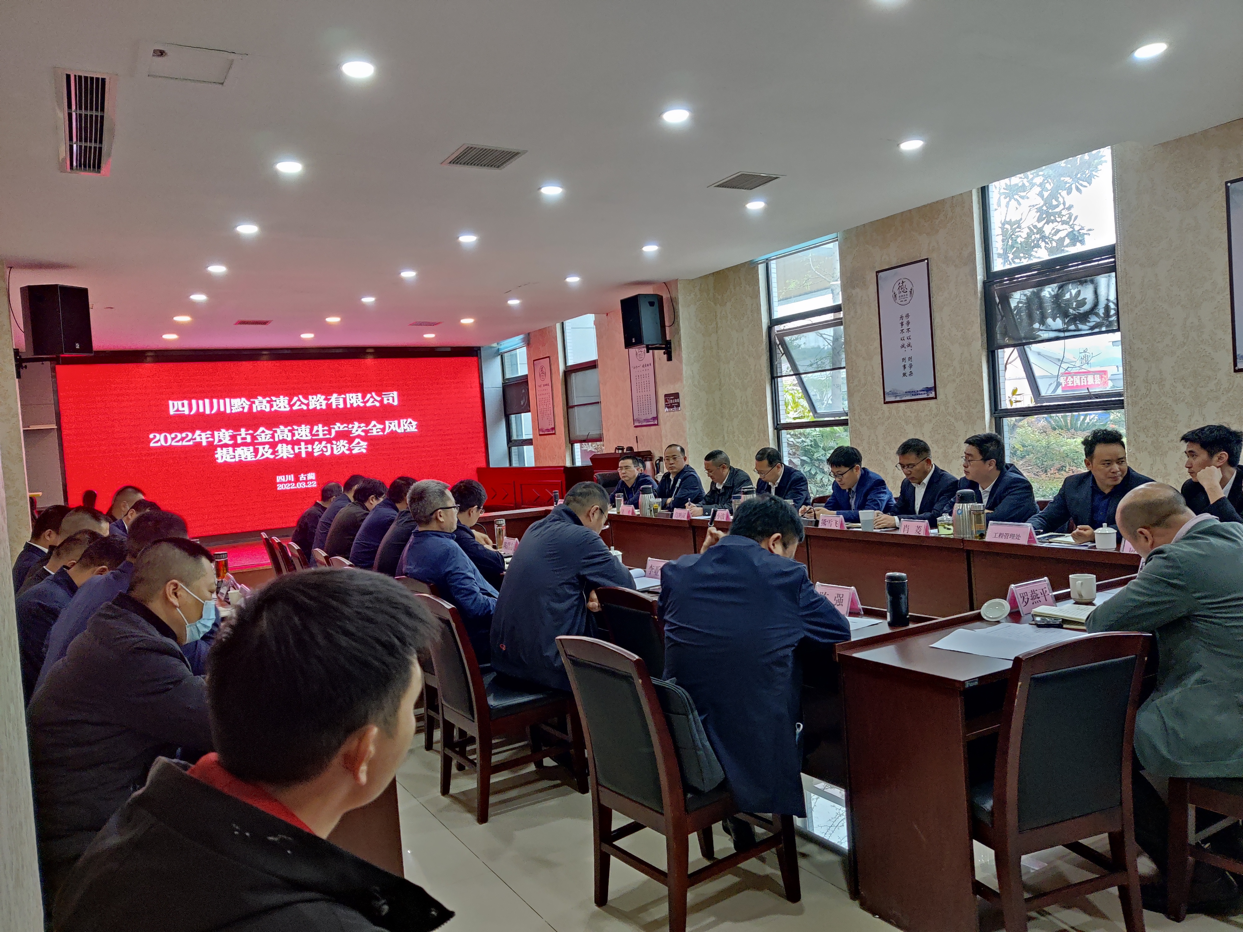 322午,川黔公司組織召開2022古金高速公路生產(chǎn)安全風(fēng)險提醒及集中約談會公司副總經(jīng)理高鵬斌主持會議,總經(jīng)理喬勝俊、董事長劉小波出席會議并發(fā)表講話。