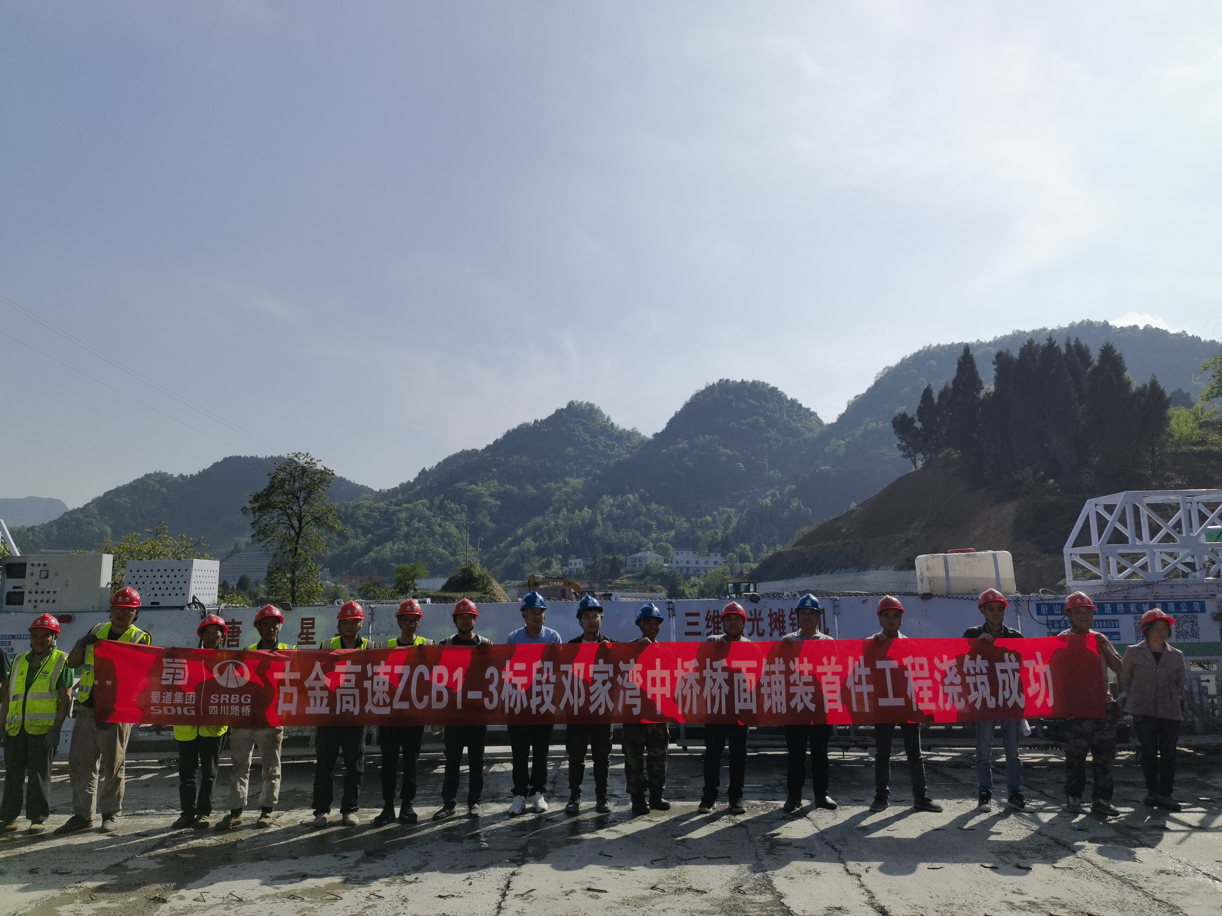 古金高速鄧家灣中橋橋面鋪裝首件工程順利澆筑完成