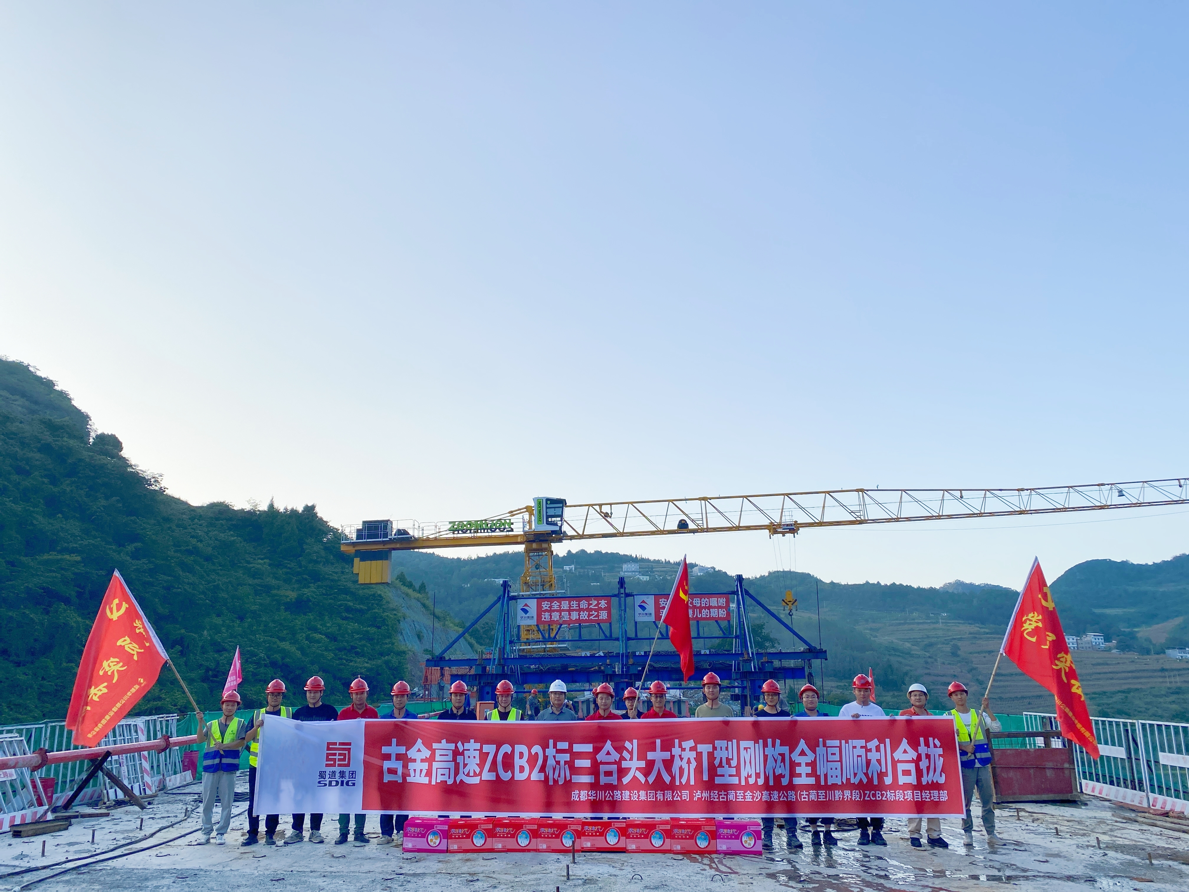 古金高速三合頭大橋T型剛構全幅成功合龍